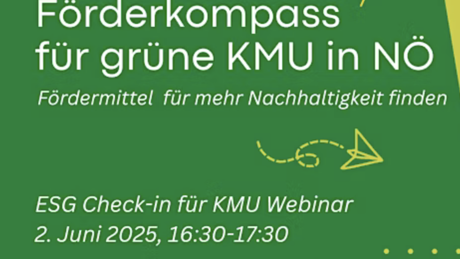 Nachhaltigkeit zahlt sich aus – besonders, wenn Sie wissen, welche Fördermittel Sie als KMU in Niederösterreich nutzen können. Dieses einstündige Webinar liefert einen kompakten und praxisnahen Überblick über aktuelle Förderprogramme im Klima-, Umwelt- und Energiebereich, die speziell auf die Bedürfnisse kleiner und mittlerer Unternehmen zugeschnitten sind.