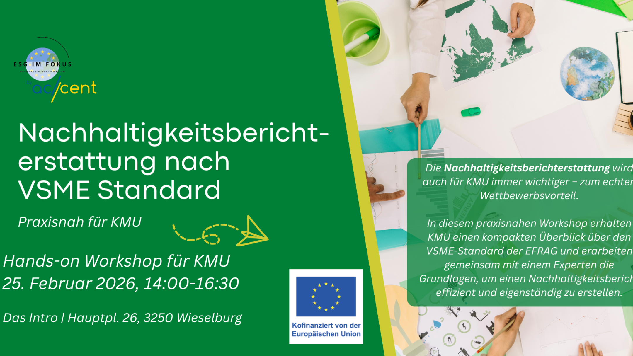 Dieser Praxis-Workshop richtet sich gezielt an KMU, die Nachhaltigkeit strategisch nutzen und sich zukunftsfit aufstellen wollen. Im Fokus steht der VSME-Standard der EFRAG – ein freiwilliger, praxisnaher Nachhaltigkeitsberichtsstandard, der speziell für KMU entwickelt wurde und in der Omnibus-Verordnung nun allen Unternehmen bis 1.000 Mitarbeitenden empfohlen wird.