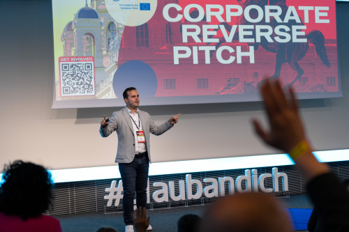 Corporate Reverse Pitch: Unternehmen und KMUs präsentieren ihre Kooperationsmöglichkeiten direkt an Startups und zeigen, welche innovativen Lösungen sie suchen.