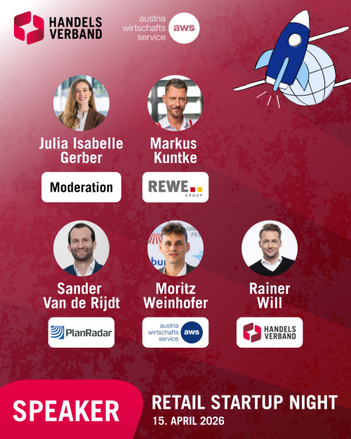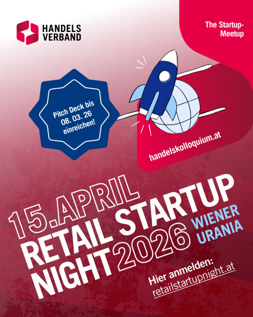 Am 15. April 2026 findet die Retail Startup Night 2026 in der Urania Wien statt. Handelsverband und aws vernetzen Start-ups, Scale-ups, Handelsunternehmen und Investor*innen aus dem DACH-Raum. Retail-Startups (Food, Near-Food, Non-Food) können sich für einen Pitch-Slot bewerben. Sechs ausgewählte Start-ups präsentieren live auf der Bühne und pitchen um den Retail Startup Award 2026; die Top 3 werden ausgezeichnet.