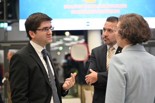 v.l.n.r. accent-GF Michael Moll, Landeshauptfrau Johanna Mikl-Leitner und Scopri-Gründer Mateo Primorac