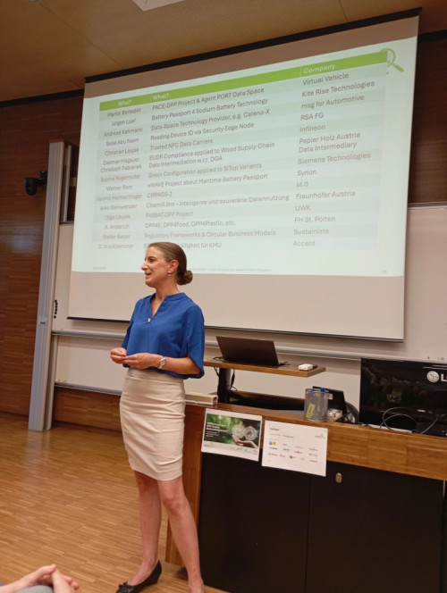 Dr. Constanze Stockhammer durfte im Rahmen des Events das Projekt ESG im Fokus vorstellen, das einen konkreten Beitrag zur praktischen Umsetzung des DPP leistet.