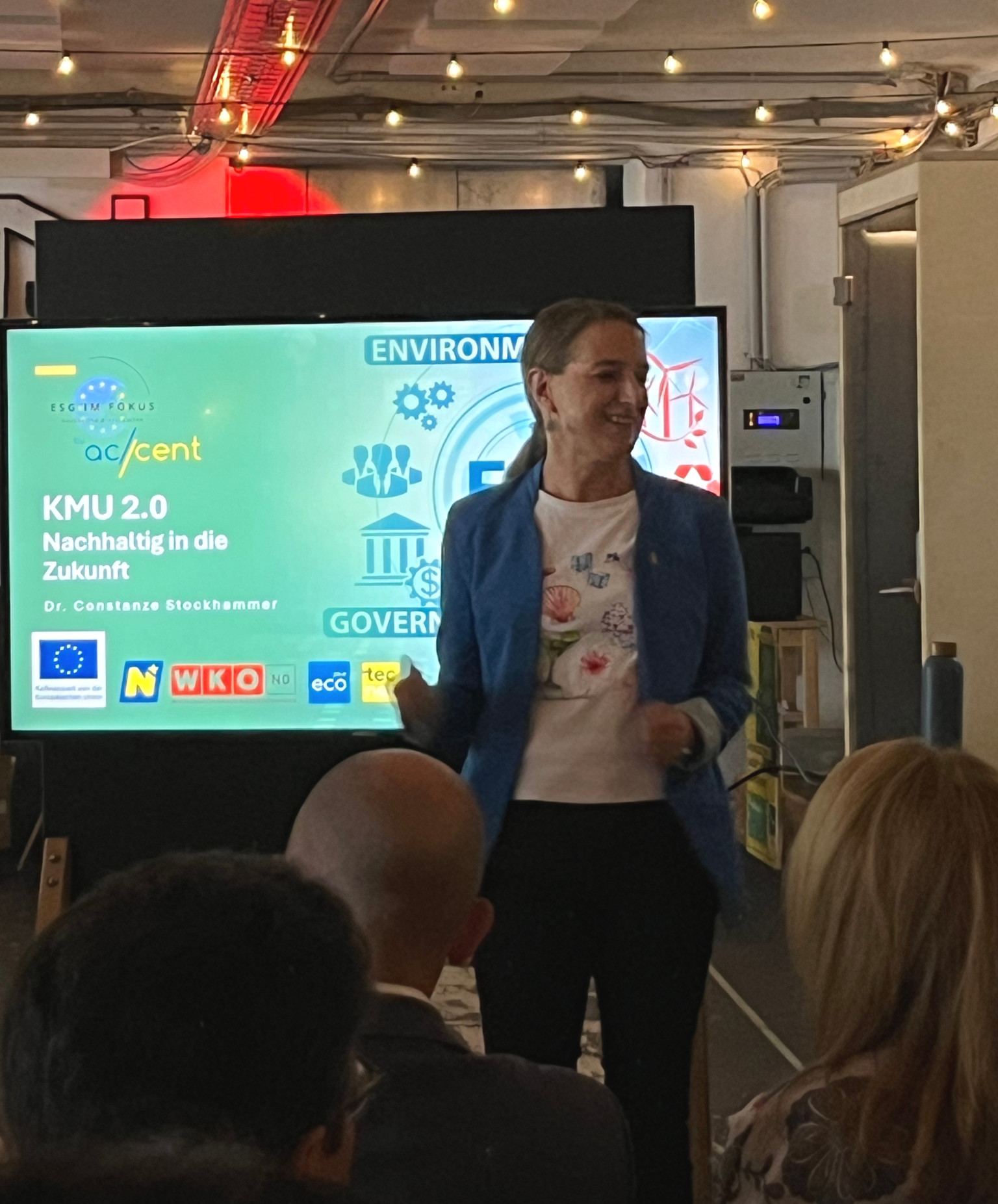 Danach gab Nachhaltigkeitsexpertin Constanze Stockhammer wertvolle Impulse zur praktischen Umsetzung von ESG-Kriterien im KMU-Alltag. Ihr Fachvortrag machte klar: Wer Nachhaltigkeit strategisch angeht, stärkt nicht nur die Umwelt, sondern auch die eigene Wettbewerbsfähigkeit.