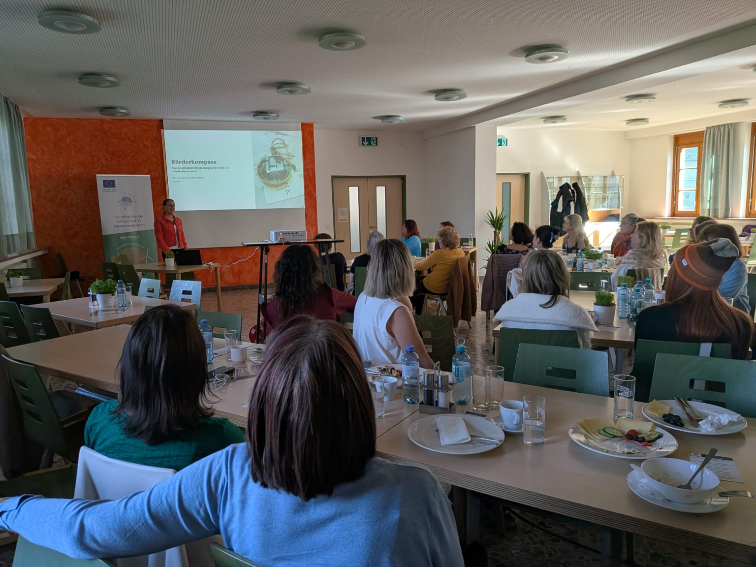 Ein inhaltliches Highlight war der Vortrag von Constanze Stockhammer, Nachhaltigkeitsexpertin bei accent und ESG im Fokus. Sie gab einen kompakten und praxisnahen Überblick über aktuelle Fördermöglichkeiten im Bereich Nachhaltigkeit und Innovation und zeigte auf, wie Unternehmen gezielt Unterstützung für ihre Projekte nutzen können.
