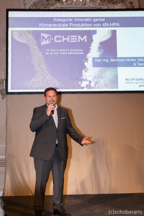 M-Chem hat eine proprietäre Technologie zur CO2-neutrale Produktion hochreiner Aluminiumoxidprodukte (4N & 5N-HPA) aus lokalen Aluminiumabfällen entwickelt (Kreislaufwirtschaft und Upcycling!), einem kritischen Rohstoff für Lithiumionakkus, LEDs und Mikrochips. Durch den Produktions- und F&E Standort am TFZ Wiener Neustadt, trägt die M-Chem aktiv zu Schaffung hochwertiger Arbeitsplätze, der Reindustrialisierung Europas sowie zur Dekarbonisierung der Wertschöpfungskette bei.